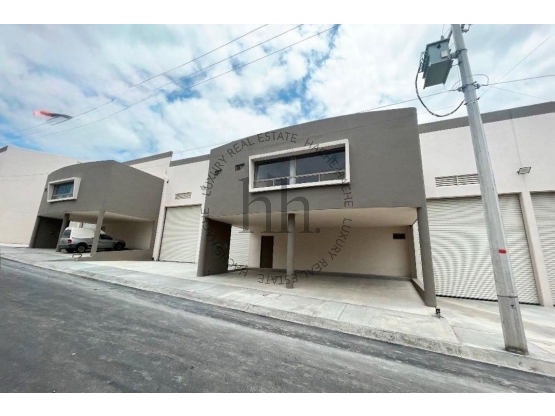Cuenta con: -con doble cortina de acero para ingreso de camiones -6 cajones de estacionamiento -rampa con andén para la descarga de mercancía de los camiones -7 metros de altura y máxima de 9.5 mts -instalación de Luz y Agua -1/2 baño y zinc en la parte de abajo. Arriba: -Oficina con Sala de juntas con 1/2 baño y Privado -Aislante Térmico -Con preparación para mini split. Muy cerca de carretera Miguel Alemán, de Apodaca y el Aeropuerto Internacional de Monterrey "Esta es una de las varias opciones que tenemos para ti. Somos una agencia de bienes raíces especializada en la venta y renta de vivienda residencial, te brindamos un servicio personalizado y de alta calidad. Si necesitas ayuda para comprar o rentar, contáctanos y uno de nuestros asesores te atenderá."