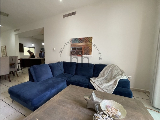 Departamento de 350m2 totales, completamente amueblado y equipado 210m2 de interiores y 140m2 de jardín privado 2 recamaras con baño completo Cuarto de servicio con baño Área de cocina, sala, comedor y lavandería 2 cajones de estacionamiento