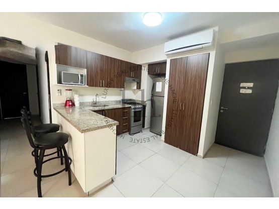 Cuenta con servicios como agua, aire acondicionado, clósets, cocina equipada e integral, electricidad, gas, internet y una vista panorámica que te encantará.